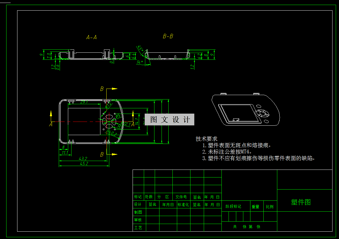 本次的注塑模设计是控制面板。主要内容包括控制面板的工艺分析,模具结构形式的拟定,浇注系统设计,冷却系统的设计等。采用了CAD、UG等软件辅助设计,进行了注塑模的尺寸计算、三维图形的设计、二维图形分析,通过文字或图片的形式表现出来。模具腔数为一模二腔,潜伏式浇口,塑件内部倒扣结构采用斜推杆抽芯机构成型,推杆推出,本资料含有模具装配图、模具三维、多张模具零件图