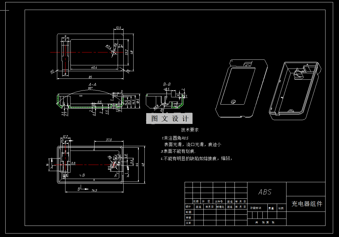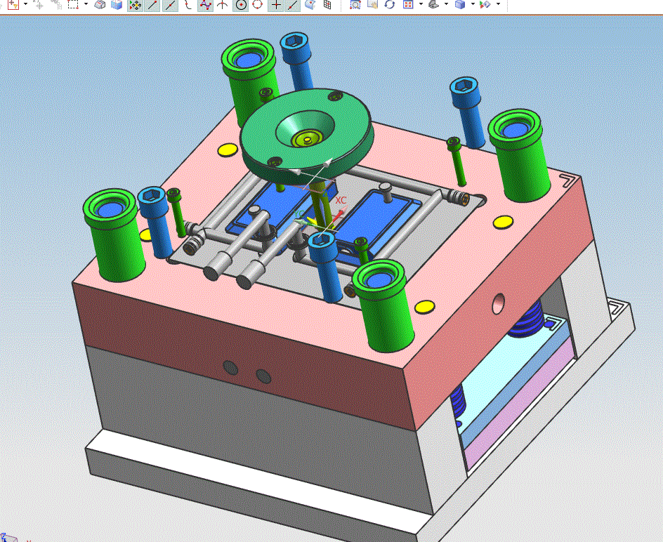 模具为一模两腔,侧浇口,塑件上内侧凹结构采用斜推杆抽芯机构成型,本资料含有模具装配图、模具三维、多张模具零件图