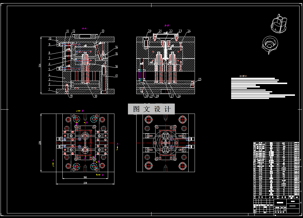 本设计是以“转接套注塑模具设计”为主题。其设计思路由参考多个生产事例而得出,设计内容是从零件的工艺分析开始的,根据工艺要求来确定设计的大体思路。在设计当中,很多东西都是自己原来所没有接触过的,尤其是前段时间所学的理论课知识与现在的自己动手操作设计,设计顺序开始是从零件的材料选择,接下是成型参数、密度、收缩率的确定,模具种类与模具设计的关系、塑件的尺寸精度与结构、注射机的选择、模具设计有关尺寸的计算(包括模具型腔型芯的计算及其公差的确定)、注塑机参数的校核、模具结构设计、模具冷却、加热系统计算、注射模标准件的选用及总装技术要求等内容。 其次是模具的结构,在模具结构的设计当中,首先设计的是模具的型腔结构,接下来是型芯结构、斜导柱、滑块、导向机构、复位杆、拉料杆、推件杆和推出机构,这样做的目的是为了规范化,更重要的是为了以后与制造人员的配合。既让自己有了良好的设计习惯,又能锻炼自己的配合意识。为以后工作做一次演练,这样更能体现理论与实践相结合的目的。