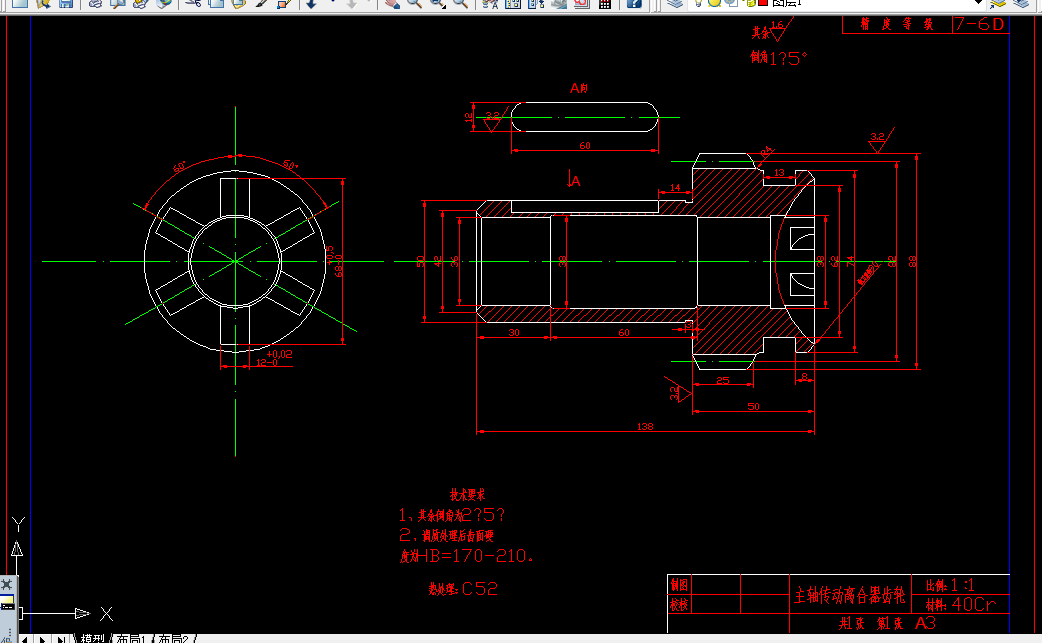 本设计介绍了铣床及X6130型万能卧式铣床的一些基本知识,主要对X6130的主轴变速传动机构和外观总体布局进行了设计。主轴变速箱是变速机构实现的场所,变速箱中的各传动轴上有不同齿数和模数的齿轮,它们通过相互啮合将前者的速度传递给后者,并且由于齿轮参数的不同而使速度在传递过程中产生变化。X6130型铣床,主轴箱能实现12级变速,机床主电动机功率是4KW,额定转速1440r/min,主轴最高转速1600r/min,最低转速35r/min,机床的进给是通过升降台纵向或者横向运动实现的;本着优化、美观、实用和不浪费的原则,X6130型铣床总体布局合理,外观简洁,床身协调;本设计还根据需要对一些设计进行了校核,主要是对主轴箱的传动轴以及轴上的零部件(如齿轮、轴承等)进行了验算,这样就使本设计更加合理、实用。