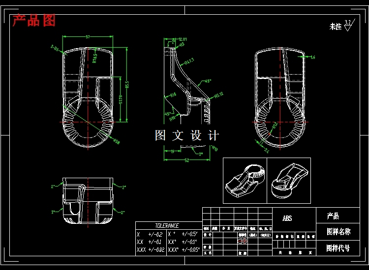 作为工业生产基础工艺装备的模具,在国民经济中占有重要的地位,模具技术也已成为衡量一个国家产品制造水平的重要标志之一。 根据塑料制品的要求,了解塑件的用途,分析塑件的工艺性、尺寸精度等技术要求,考量塑件制件尺寸。本模具采用一模二腔,点浇口进料,拉钩顺序脱模,注射机采用海天HTF200XB型号,设置冷却系统,CAD和UG绘制二维总装图和零件图,选择模具合理的加工方法。附上说明,系统地运用简要的文字,简明的示意图和和计算等分析塑件,从而作出合理的模具设计。