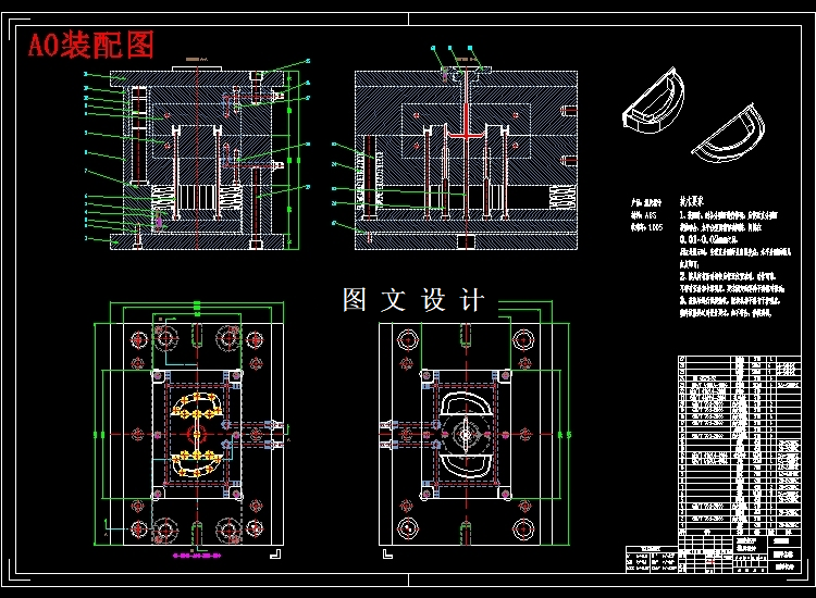 主要介绍:注射模的整个过程,包括成型零部件、推出机构、流道等一些设计。在说明书书写过程中,通过一个月的时间对原始资料进行搜集,充分考虑模具的各种结构并和指导老师及同学之间进行讨论,最终选择了说明书所写的模具结构。 关键词:机械设计;模具设计;CAD绘制二维图;UG绘制3D图。