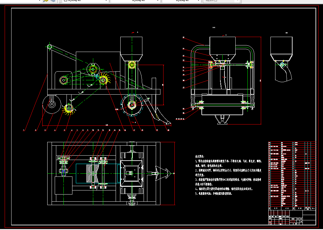 针对此次课题研究,则首先阐述国内外甘蔗种植技术的发展概况,分析目前应用的背景和趋势所向,以及现有设备普遍存在一些的缺陷,继而从中执行优化和改进,来制定总体框架结构。它的主体部分由开沟器、播种机构、排肥器和覆土装置等组装而成,紧接着确定各个模块的的传动方案,以及对应的作业原理;再者,完成电机的选型和性能参数的确定,下一步依次对功能性部件执行结构设计,并且结合机械原理和有关文献资料,继而从中引荐经验数据与公式,用以完成链条、输料管等关键部件的尺寸验算,最后亟需进行强度校核,这样方可论证整套机器的安全性和合理性。除此之外,运用三维软件SolidWorks来完成甘蔗种植机的建模,并结合AutoCAD绘制出装配图和若干零件图。