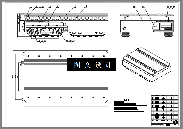 为此我们涉及到整套机械结构设计方案。其中包含驱动设计,传动设计接待系统以及整个计价的系统设计,并对其关键零部件进行了分析,优化设计。运用是三维数模软件对履带式行进机构设计进行三维模型的绘制设计,本次设计并运用有限元分析元件对履带式行进机构设计进行关键零部件的分析设计。