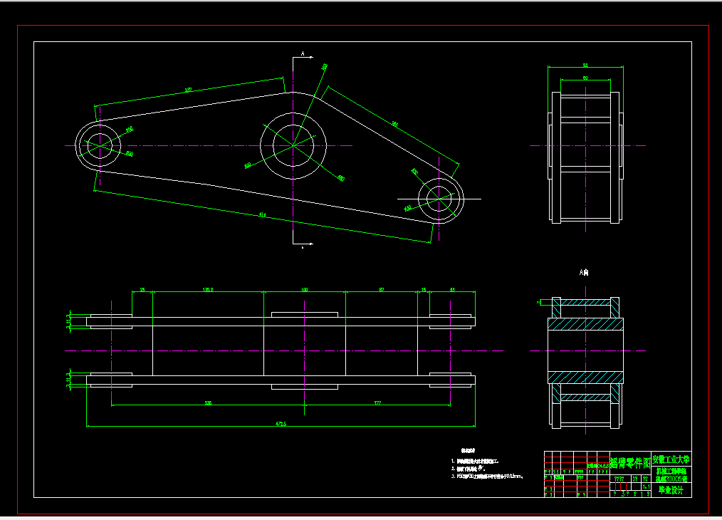 作机构上九个铰接点位置的确定来设计出动臂的模型及动臂上各点的受力,然后计算出举臂油缸和转斗油缸的内径、活