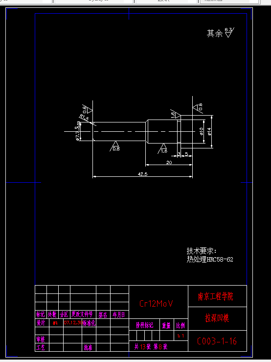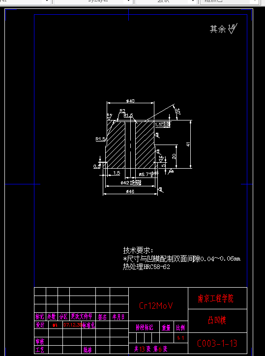 3.2 填写凸凹模加工工艺规程卡•••••••••••••••••••••••••16