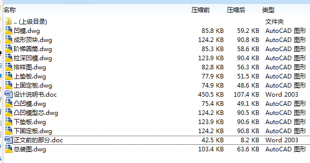 此次毕业设计是由蔡昀老师亲自指导,设计一副简单的复合模具,经过数个月的设计,基本完成此次设计的任务。此副模具主要是阶梯圆筒形零件的设计,采用落料﹑拉深两道工序相结合的复合模,本人经查阅相关书籍﹑资料以队此副模具所用到的相关公式﹑数据做出了一个准确的依据。