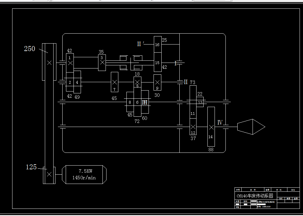 普通中型车床主轴箱设计,主要包括三方面的设计,即:根据设计题目所给定的机床用途、规格、主轴极限转速、转速数列公比或级数,确定其他有关运动参数,选定主轴各级转速值;通过分析比较,选择传动方案;拟定结构式或结构网,拟定转速图;确定齿轮齿数及带轮直径;绘制传动系统图。其次,根据机床类型和电动机功率,确定主轴及各传动件的计算转速,初定传动轴直径、齿轮模数,确定传动带型号及根数,摩擦片尺寸及数目;装配草图完成后要验算传动件(传动轴、主轴、齿轮、滚动轴承)的刚度、强度或寿命。最后,完成运动设计和动力设计后,要将主传动方案“结构化”,设计主轴变速箱装配图及零件图,侧重进行传动轴组件、主轴组件、变速机构、箱体、润滑与密封、传动轴及滑移齿轮零件的设计。