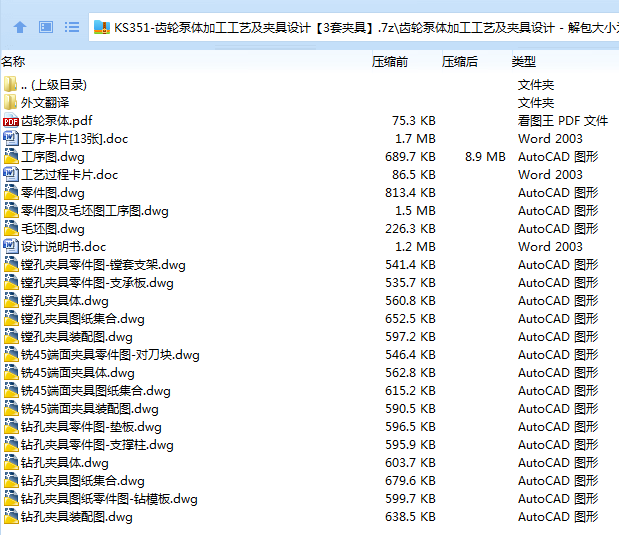 本设计是基于齿轮泵体零件的加工工艺规程及一些工序的专用夹具设计。齿轮泵体零件的主要加工表面是端面及孔系。一般来说,保证平面的加工精度要比保证孔系的加工精度容易。因此,本设计遵循先面后孔的原则。并将孔与平面的加工明确划分成粗加工和精加工阶段以保证孔系加工精度。夹具选用专用夹具,夹紧方式多选用手动夹紧,夹紧可靠,机构可以不必自锁。因此生产效率较高。适用于大批量、流水线上加工。能够满足设计要求。