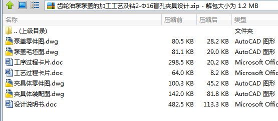 本课程设计主要内容包括齿轮油泵泵盖的加工工艺过程设计和钻 盲孔的专用夹具设计,在课程设计过程中完成了零件图、毛坯图、夹具体装配图和夹具体零件图的绘制及说明书的编写。