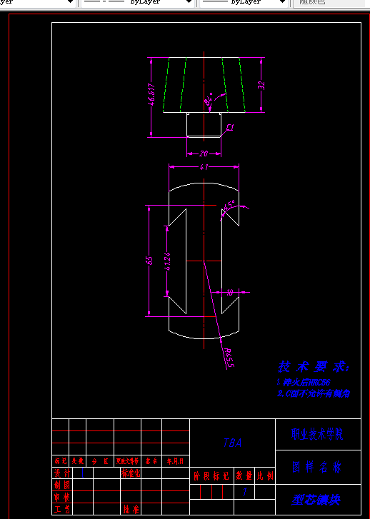 3设计的大体过程:本塑件要求采用一模一腔,塑件的尺寸精度有一定的要求,因而对尺寸的计算确定要严谨,浇口套采用点浇口,成型零部件设计采用组合式凹模结构,型芯采用两嵌件推出,其中用螺钉、压板固定,模具的推出机构要与注射机相适应。为求其型腔维修方便,易拆换,采用组合式型腔。设计主要零部件时,紧记要求便于制造。