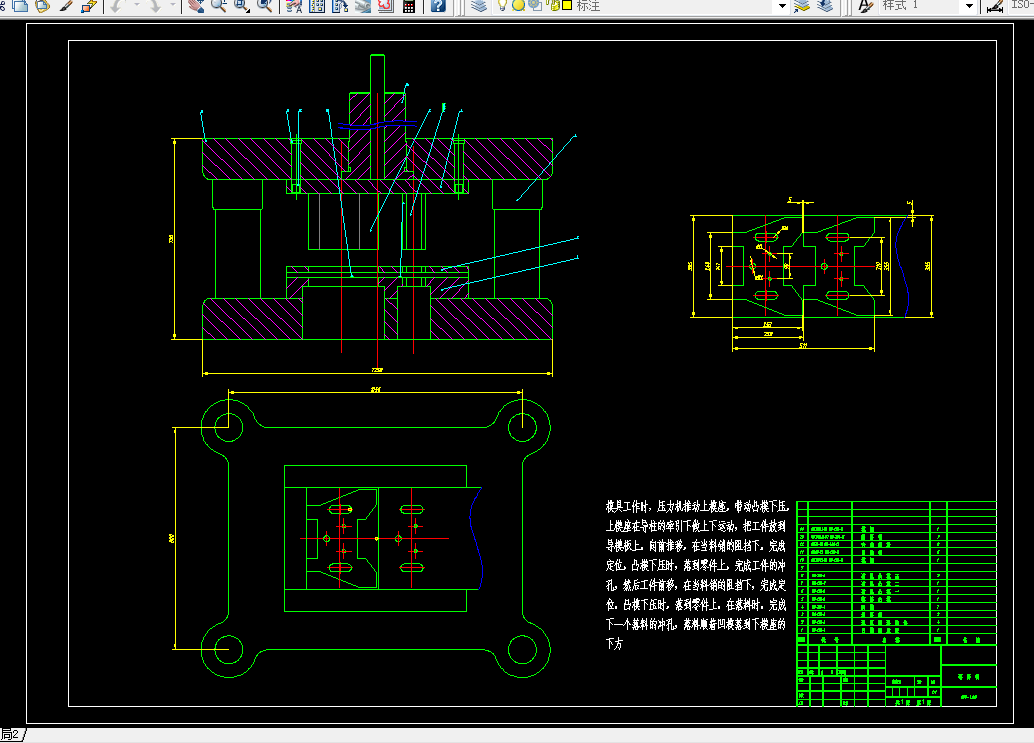 随着工业的发展,冲压成型工艺在机械工业、电子工业、航天航空工业、生物领域及日用品的生产中占的比例越来越大。而Auto CAD 2007和PRO/ENGINEER5.0自问世以来,多年来已成为全世界最普及的CAD/CAM系统。广泛应用与机械、电子、模具等行业。根据连接板产品的特点和实际生产的产量,设计成由冲孔、切边、弯曲所组成的一副复合模,该级进模具能够自动送料,并自动切断导料错误时压力机的主电路。