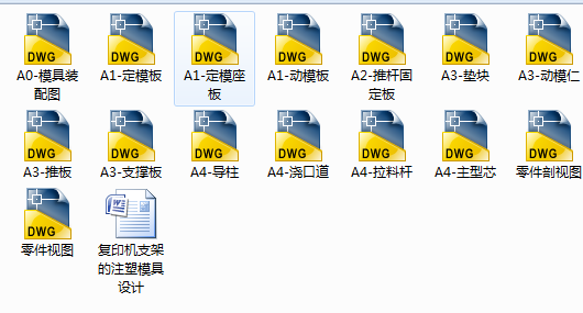 关键词:注射模;侧浇口;顶杆推出机构;PRO/E及AUTOCAD
