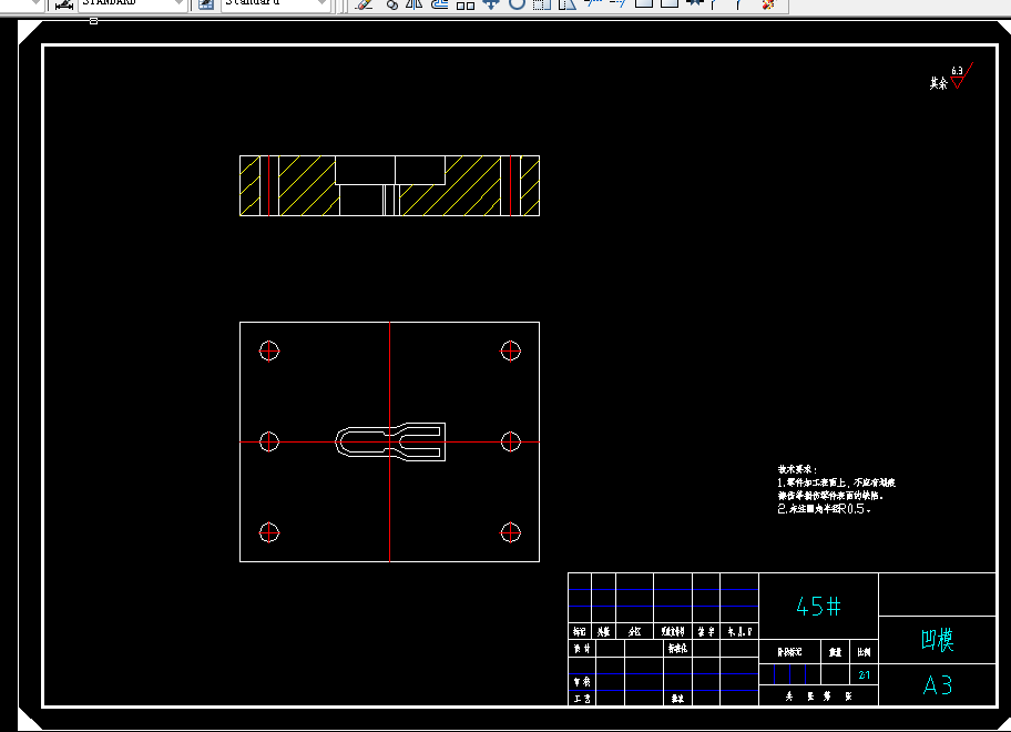 最后,根据计算出的模具刃口尺寸设计出相应的凸凹模,并且查找资料选择冷冲压模的标准零件,符合标准后,就把凸凹模与其它各零部件进行总体装配。在确定了模具体闭合高度后,选出合适的压力机在调试校验后并进行试冲加工,以达到符合的标准,最终完成加工。