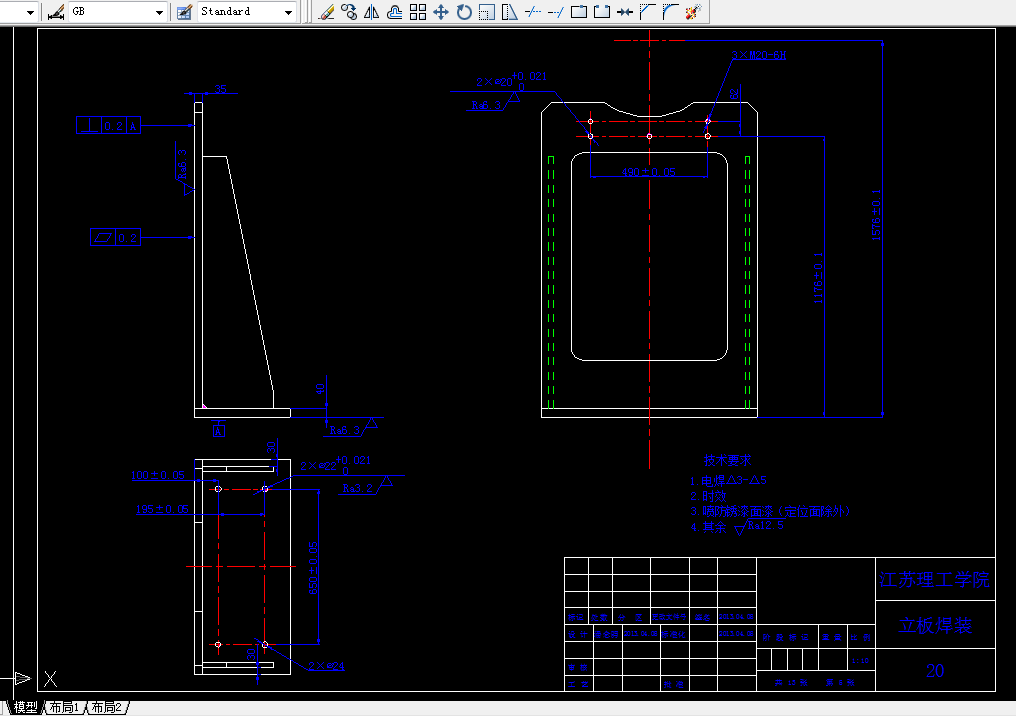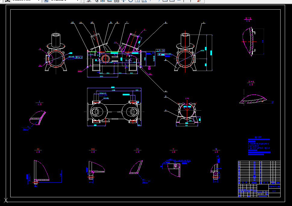此次设计任务是对筒体的加工工艺、焊接夹具以及定位的设计,该工件由于上端面两小筒体的焊接位置和角度都有位置关系,在大筒体两端和侧面也需要焊接,因此在工序安排上,先两端面端盖,再焊接侧面端盖,最后焊接两小筒体,保证角度和中心距离。这三步焊接工序采用同一个专用夹具,由于该零件的尺寸大,所需的夹紧力也大,因此都采用自动夹紧,手动脱件的方法,它的机构设计复杂,但能满足要求。