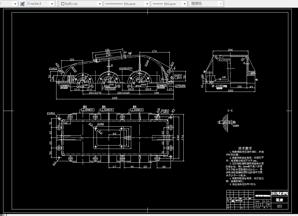 3)绘制传动装置中减速器装配图和箱体、齿轮及轴的零件图。