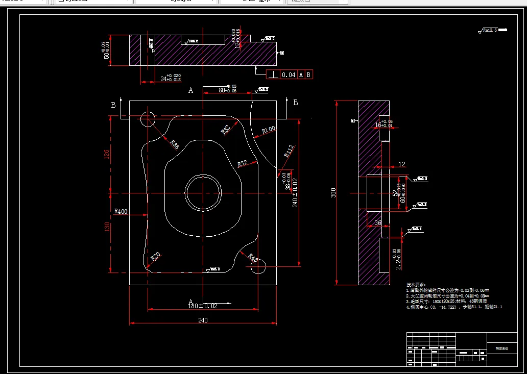 本次设计任务是对零件的加工工艺设计与CAM,使用CAD制图软件将零件的二维图形画出来,再用UG软件画出三维图纸。接着对零件结构、精度、技术要求进行分析。设计加工零件的数控工艺方案,选择毛坯材料及大小、加工用的刀具、加工机床,以及合理的切削参数等。选择出最佳的加工工艺方案,然后使用UG中的CAM模块对零件的数控加工程序进行编制,完成本次设计。