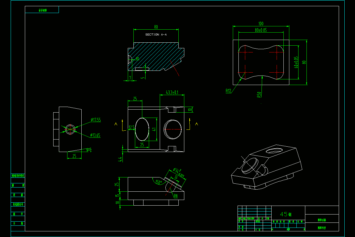 基于UG的六面体零件的多轴五轴加工工艺及VERICUT仿真数控编程含UG三维及张CAD零件图带设计计算说明。复杂形状的零件越来越多,精度要求也越来越高,对于复杂零件,往往采用数控机床或多轴数控加工中心。因此掌握零件的数控编程技巧与方法,并在数控加工前对数控程序进行仿真验证,利用计算机图形显示系统把加工过程中零件模型、刀具轨迹、刀具外形一起显示出来,对零件的加工过程进行数控加工仿真,对于减少零件的试切时间和次数,有效预防干涉、提高生产率等方面都有非常重要的意义实践依据。 介绍了六面体零件从毛坯到成品的加工工艺,对零件的结构进行了分析,制定了零件的加工工艺内容。选择了零件毛坯和设备,确定了定位基准,对零件的加工工艺方案、切削用量的选择等进行了具体的分析,采用UG自动编写多轴加工程序。并使用数控Vericut仿真软件进行铣削加工出零件,检验程序正确性。