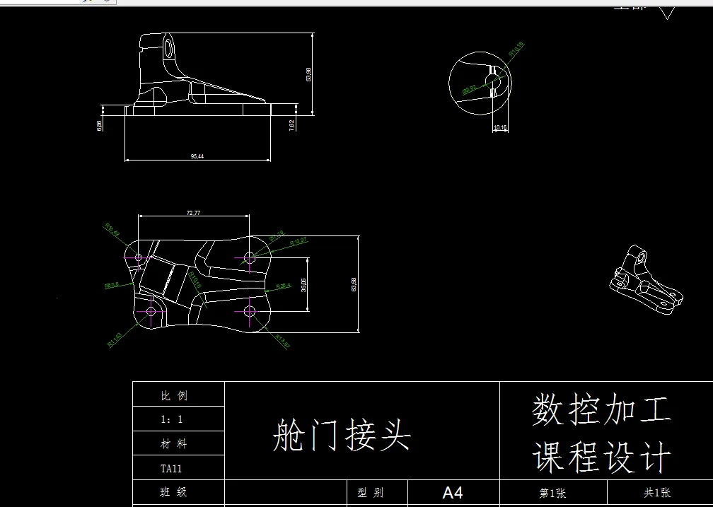 数控加工课程设计是学习完数控加工以及相关课程之后的一个实践性教学环节,通过该课程设计将在课堂上学习的相关理论知识具体地应用到一个零件的工艺过程设计上。该课程设计主要内容是零件制造工艺规程设计和数控加工设计。