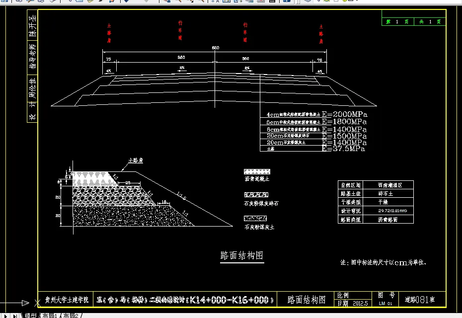 根据设计任务书的要求,本设计是贵州省六盘水市玉舍至马场桥的一段二级公路设计。根据当地政治、经济、文化、交通、地形、交通远景规划等因素综合考虑,拟建成双向两车道。设计速度为40km/h(山岭重丘区),全长2005.708千米,路面宽7m,路基宽度为8.5米,最小平曲线半径为60米,平曲线最小长度为160.298米。最大纵坡为6.13%,最小纵坡为1.92%,最小竖曲线半径为1500米,最小竖曲线长度为105.024米,最小坡长为169.056米。设计内容包括路线方案论证与比选、路线的平、纵、横设计、路基设计、挡土墙设计、路面设计等内容。在设计中参考了大学四年所学的大部分专业课程教材、部分基础课程教材,以及中华人民共和国交通部颁布的行业规范和部分国内外先进理论及经验。