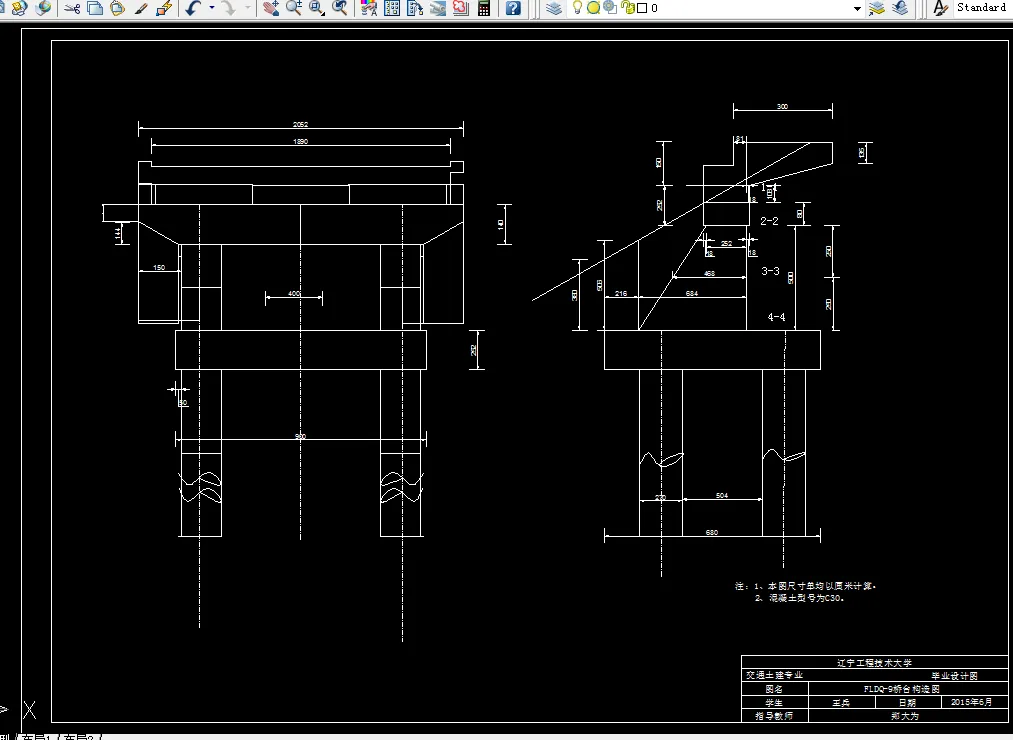 本设计是根据桥位处地质剖面图和批准的设计任务书要求,本着“实用、经济、安全、美观”的桥梁设计原则,进行肇庆某大桥施工图设计。本次桥梁设计设计荷载为公路—Ⅱ级,设计环境为Ⅰ类环境,设计安全等级为二级,通航等级为六级通航。