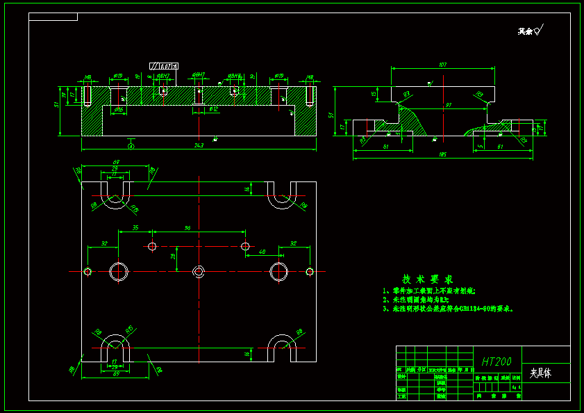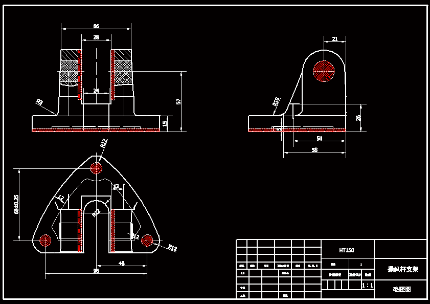 操纵杆支架零件铣台阶面夹具 考虑如何提高劳动效率,降低劳动强度,提高加工精度。φ11的孔和其两端面都已加工好,为了使定位误差减小,选择已加工好的φ11孔和其端面作为定位精基准,来设计本道工序的夹具,以两销和两已加工好的φ11孔的端面作为定位夹具。