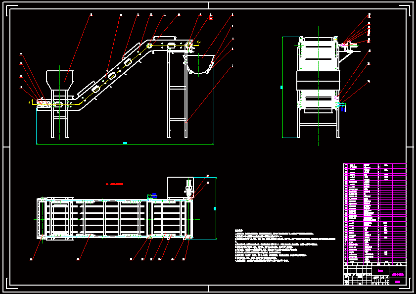 物流输送提升机的结构设计 输送机的整体形状设计为 z 型, 采用不锈钢挡板输送带防止材料散射, 驱动滚筒增加钢杆, 增加驱动力矩。采用支撑板代替支撑辊设计了一种环保、高效、简单的物料输送机构。
