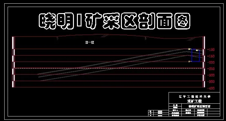 晓明二矿拥有三层可采煤层,煤层和煤厚分别是2#(4.6)、4-1#(4.0)、7#(3.6)。煤层南北倾向约为3.9km,东西走向约为3.8km,井田面积约为15.8km2。平均倾角为10度。工业储量为265 Mt,设计储量为246 Mt。本设计从矿井的开拓、开采、运输、通风、提升及工作面的采煤方法等各个环节进行了详细的叙述,设计严格遵守《设计规范》和《煤矿安全规程》,整个矿井采用了先进的皮带运输,提高了运输能力,为矿井的增产打下了良好的运输基础。采煤方法采用走向长壁综合机械化采煤方法。工作面支护方式为液压支架支护方式,端头支护采用端头支架。本设计采用立井多水平上下山开拓,主井采用箕斗提升,副井采用罐笼提升,大巷采用集中布置。通风方式为中央并列式。本次设计是晓明二矿新井设计,地质资料都是在实习矿上搜集的,在指导教师的指导下,并合理运用平时及课堂上积累的知识,查找有关资料和文献,力求设计出一个高产、高效、安全的现代化矿井。