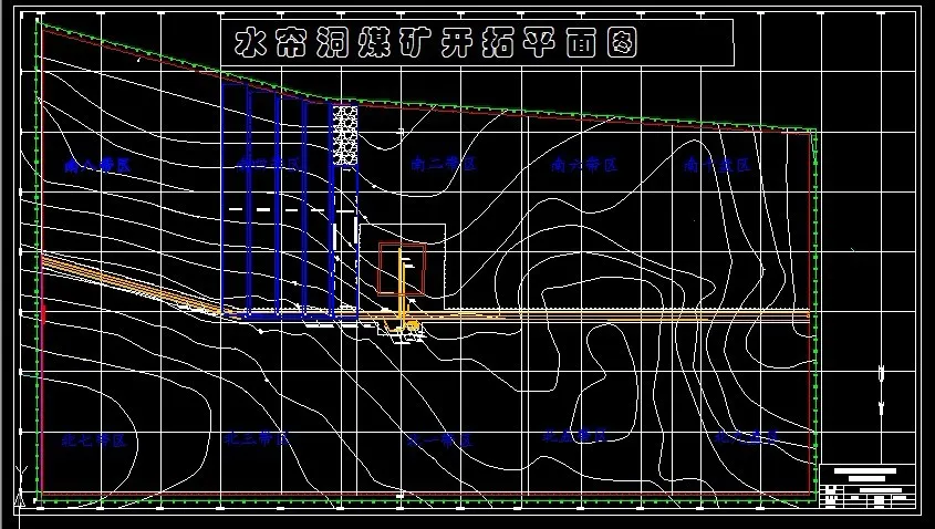 本次设计为某煤业2#煤层0.6Mt/a矿井初步设计,走向长约7353m,倾向长约1300m,矿区面积约为9242.6 m2 。矿区可采煤层为2#、5#煤层,6#煤层局部可采,三层煤厚为11.04m,平均倾角为12度,计算得矿区工业储量约为8600万t,含有矿田边境保护煤柱593万t、大巷保护煤柱1064万t、村落及工业广场保护煤柱372万t、断层保护煤柱511万t,计算得可采储量约为4847万t,服务年限为57.71a。本设计为2#煤层开采设计,2#煤层厚度为1.06~6.90m,平均厚度为3.84m,煤层倾角为12度。2#煤层分两个带区和两个采区,一带区为首带区,每个带(采)区划分5个工作面开采共20个工作面,工作面长度为150m,年推进量为1164m,首带区采用倾向长壁采煤法综采一次性采全高开采,采高3.84m,每个工作面平均都为1年采完。开拓方式采用主斜井、副斜井、一个回风立井,两斜一立式开拓,主副斜井井筒位置位于矿区中部山沟地势平缓地区,附近有村落和道路,交通便利施工方便。回风立井采用抽出式通风,通风方式为中央分列式。