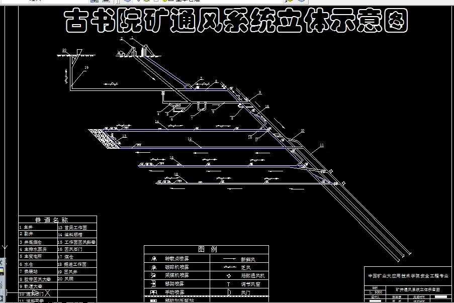 一般部分是古书院矿210万吨新井通风系统设计。全篇共分为五章:矿区概述及井田地质特征、井田开拓、采煤方法及带区巷道布置、矿井通风和矿井安全技术措施。