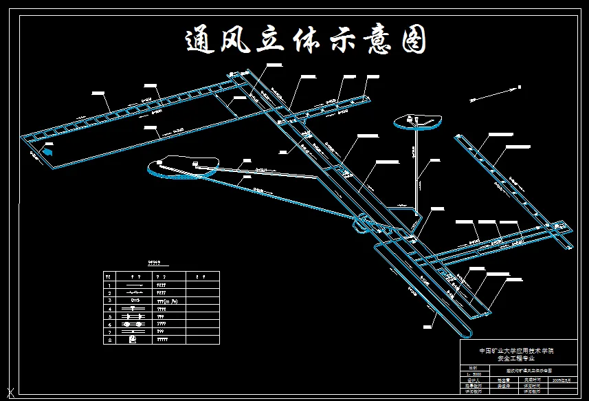 4.矿井通风设计:根据本矿开拓开采条件,采用中央边界式通风,风量分配由内向外计算,工作面采用“U”型通风方式。掘进面用局扇进行压入式通风。根据通风容易、困难时期的通风阻力选择FBCDZ-8-№30型轴流式风机。矿井通过风机反转反风。