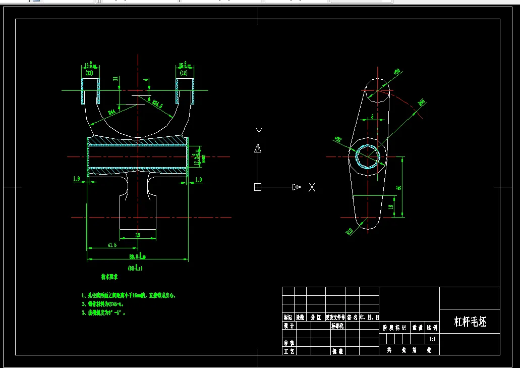 杠杆加工工艺规程及其夹具设计是包括零件加工的工艺设计、工序设计以及专用夹具的设计三部分。在工艺设计中要首先对零件进行分析,了解零件的工艺再设计出毛坯的结构,并选择好零件的加工基准,设计出零件的工艺路线;接着对零件各个工步的工序进行尺寸计算,关键是决定出各个工序的工艺装备及切削用量;然后进行专用夹具的设计,选择设计出夹具的各个组成部件,如定位元件、夹紧元件、引导元件、夹具体与机床的连接部件以及其它部件;计算出夹具定位时产生的定位误差,分析夹具结构的合理性与不足之处,并在以后设计中注意改进。