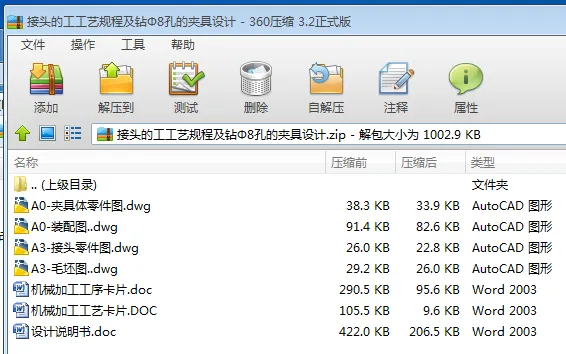 接头加工工艺规程及其钻Φ8孔的夹具设计是包括零件加工的工艺设计、工序设计以及专用夹具的设计三部分。在工艺设计中要首先对零件进行分析,了解零件的工艺再设计出毛坯的结构,并选择好零件的加工基准,设计出零件的工艺路线;接着对零件各个工步的工序进行尺寸计算,关键是决定出各个工序的工艺装备及切削用量;然后进行专用夹具的设计,选择设计出夹具的各个组成部件,如定位元件、夹紧元件、引导元件、夹具体与机床的连接部件以及其它部件;计算出夹具定位时产生的定位误差,分析夹具结构的合理性与不足之处,并在以后设计中注意改进。