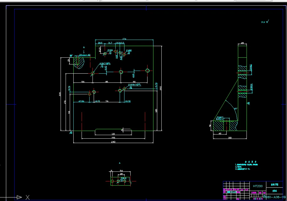 本次设计是刀架件的加工工艺规程及一些工序的专用夹具设计。刀架的主要加工表面是平面及孔。由加工工艺原则可知,保证平面的加工精度要比保证孔的加工精度容易。所以本设计遵循先面后孔的原则。并将孔与平面的加工明确划分成粗加工和精加工阶段以保证加工精度。基准选择以Φ32孔作为粗基准,以为刀架底面作为精基准。