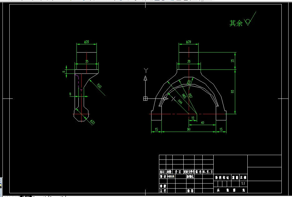 本次设计主要内容:设计离合器接合叉加工工艺及夹口端面铣削夹具工艺装备并绘制出支架零件图、毛坯图、夹具装配图,填写工艺卡片,编制课程设计说明书。