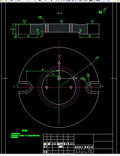 上盖加工工艺规程及其钻6-Φ4.5孔的夹具设计是包括零件加工的工艺设计、工序设计以及专用夹具的设计三部分。在工艺设计中要首先对零件进行分析,了解零件的工艺再设计出毛坯的结构,并选择好零件的加工基准,设计出零件的工艺路线;接着对零件各个工步的工序进行尺寸计算,关键是决定出各个工序的工艺装备及切削用量;然后进行专用夹具的设计,选择设计出夹具的各个组成部件,如定位元件、夹紧元件、引导元件、夹具体与机床的连接部件以及其它部件;计算出夹具定位时产生的定位误差,分析夹具结构的合理性与不足之处,并在以后设计中注意改进。
