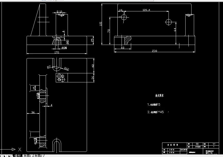 本次设计是车床变速箱中拔叉零件的加工工艺规程及一些工序的专用夹具设计。此拔叉零件的结构较为复杂,其加工的地方主要是孔和平面。本设计先加工孔后加工面。将孔与平面的加工明确划分成粗加工和精加工阶段以保证它们的加工精度。基准选择以拔叉Φ32外圆作为粗基准,来加工中间的通孔,然后以此加工过的孔作为精基准。主要加工工序安排是先以中心孔定位加工出顶平面和右侧平面以及下面的大孔的两平面,再以中心孔定位加工出下端的大孔。加工时是用镗床镗孔。最后以这两个孔为基准,分别加工右侧的槽和顶面的螺纹底孔。整个加工过程选用了钻床、铣床和镗床。工件在机床上定位夹紧选用专用夹具,夹紧方式为手动夹紧,夹紧可靠,操作方便。因此生产效率较高,适用于大批量、流水线上加工。能够满足设计要求。