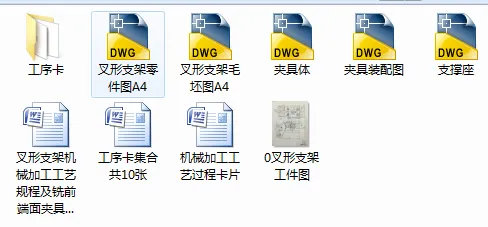本次设计是叉形支架件的加工工艺规程及一些工序的专用夹具设计。叉形支架的主要加工表面是平面及孔。由加工工艺原则可知,保证平面的加工精度要比保证孔的加工精度容易。所以本设计遵循先面后孔的原则。并将孔与平面的加工明确划分成粗加工和精加工阶段以保证加工精度。基准选择以工件前面、工件前端面及工件右侧面作为定位粗基准,以叉形支架后面作为精基准。