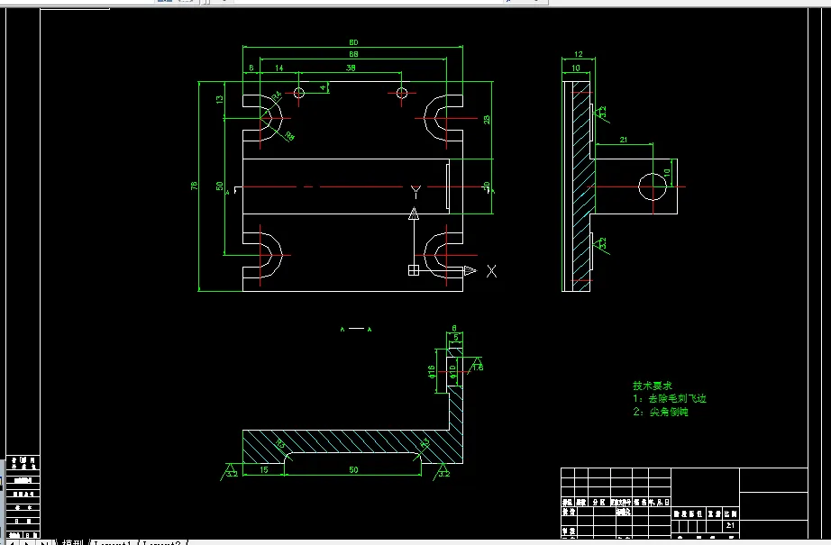 这次设计的是摇臂支架Φ2mm孔的夹具。包括零件图、毛坯图、装配图各一张,机械加工工艺过程卡片和与工序卡片各一张。根据零件的性质和零件图上各端面的粗糙度确定毛坯的尺寸和机械加工余量。最后拟定工艺路线图,制定该工件的夹紧方案,画出夹具装配图。