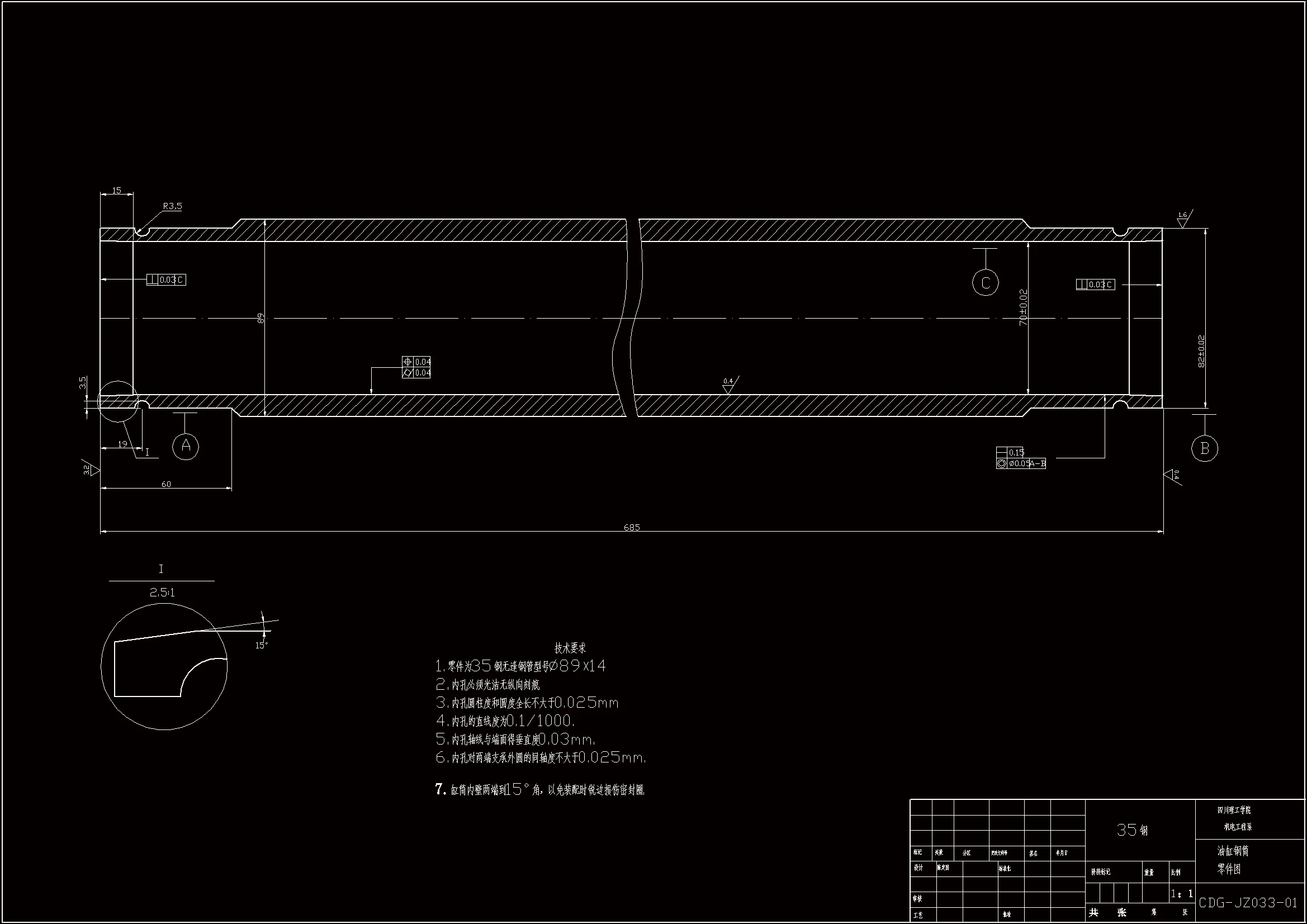 套筒零件的主要加工表面为孔和外圆表面。外圆表面加工根据精度要要求可选择车削和磨削。孔加工方法的选择比较复杂,需要考虑零件的结构特点、孔径大小、长径比、精度和粗糙度要求以及生产规模等各种因素。对于精度要求较高的孔往往还要采用几种不同的方法顺次进行加工。本次设计的油缸,为保证孔的精度和表面质量将先后经过粗镗、半精镗、精镗和滚压等四道工序加工。