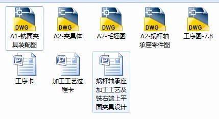 蜗杆轴承座零件的机械加工工艺规程制订及专用机床夹具设计是包括零件加工的工艺设计、工序设计以及专用夹具的设计三部分。在工艺设计中要首先对零件进行分析,了解零件的工艺再设计出毛坯的结构,并选择好零件的加工基准,设计出零件的工艺路线;接着对零件各个工步的工序进行尺寸计算,关键是决定出各个工序的工艺装备及切削用量;然后进行专用夹具的设计,选择设计出夹具的各个组成部件,如定位元件、夹紧元件、引导元件、夹具体与机床的连接部件以及其它部件;计算出夹具定位时产生的定位误差,分析夹具结构的合理性与不足之处,并在以后设计中注意改进。