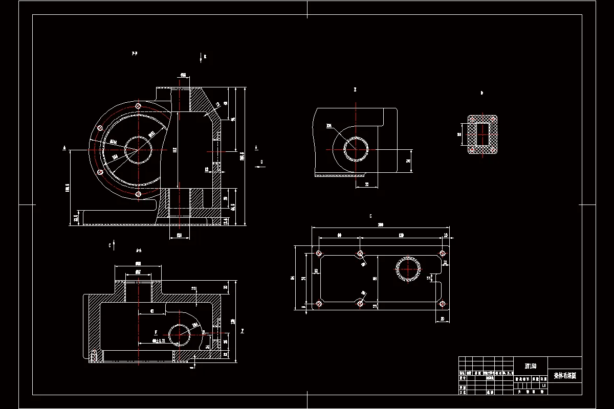 分析壳体零件图,零件材料HT150,故毛坯类型为铸件,查表得出各加工表面的毛坯余量,并制定出合理的工艺路线,然后再选择刀具、量具和机床等。