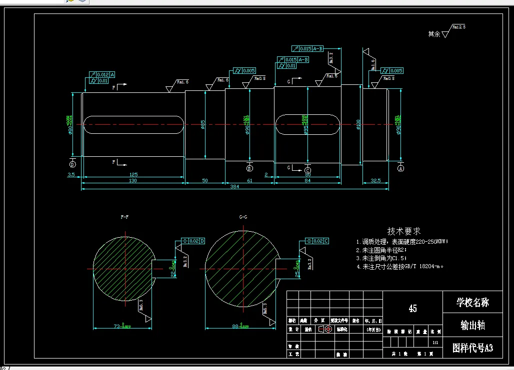 这次的毕业设计是设计一级圆柱齿轮减速器及其输出轴加工工艺设计,减速器的参数要求为传动比7.8,传动功率45KW,主要对输出轴结构进行计算和设计。绘制装配图,按装配图要求,标注长宽高总体尺寸、装配尺寸和技术要求,列出零件明细表等。