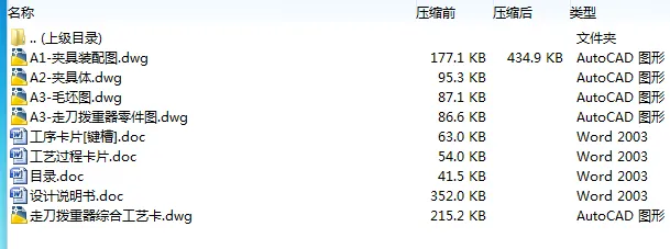 走刀拨重器加工工艺规程及其夹具设计是包括零件加工的工艺设计、工序设计以及专用夹具的设计三部分。在工艺设计中要首先对零件进行分析,了解零件的工艺再设计出毛坯的结构,并选择好零件的加工基准,设计出零件的工艺路线;接着对零件各个工步的工序进行尺寸计算,关键是决定出各个工序的工艺装备及切削用量;然后进行专用夹具的设计,选择设计出夹具的各个组成部件,如定位元件、夹紧元件、引导元件、夹具体与机床的连接部件以及其它部件;计算出夹具定位时产生的定位误差,分析夹具结构的合理性与不足之处,并在以后设计中注意改进。