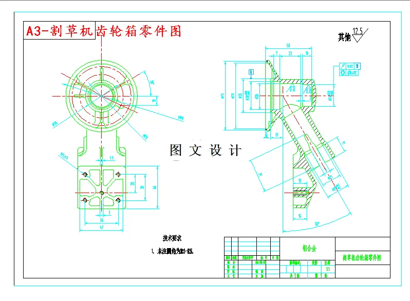 本设计对割草机齿轮箱支架的加工进行多工位夹具的设计。通过对各种定位夹紧装置的分析比较,选择并组合了一套既能够满足加工要求的,又比较简洁的装置。同时,通过对一系列定位误差和夹紧力的计算,验证了该零件的加工是可以保证其要求的精度的,它的加工误差在规定的范围内。通过夹紧力的计算,也验证了零件在被夹紧的前提下,它受到的夹紧力也并不大,满足夹具设计所要求的既要保证一定的夹紧力不使工件在加工过程中发生位移,但同时又不能过大致使工件发生变形。 旨在通过这一专用夹具,能够加工出一组成60度角的阶梯孔。由于是阶梯孔,所以可以采用组合刀具来加工,提高其生产效率。夹紧机构采用螺旋夹紧机构。为了加工60度孔,用分度盘对其定位。用定位销保证定位牢靠。并且,本装置采用了导轨副形式和多工位形式,提高生产的效率。