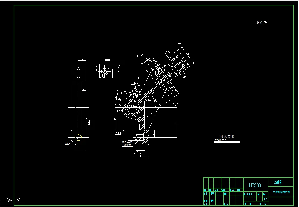 本设计是基于曲柄零件的加工工艺规程及一些工序的专用夹具设计。曲柄零件的主要加工表面是平面及孔系。一般来说,保证平面的加工精度要比保证孔系的加工精度容易。因此,本设计遵循先面后孔的原则。并将孔与平面的加工明确划分成粗加工和精加工阶段以保证孔系加工精度。基准选择以曲柄的输入轴和输出轴的支承孔作为粗基准,以顶面与两个工艺孔作为精基准。主要加工工序安排是先以支承孔系定位加工出顶平面,再以顶平面与支承孔系定位加工出工艺孔。在后续工序中除个别工序外均用顶平面和工艺孔定位加工其他孔系与平面。支承孔系的加工采用的是坐标法镗孔。整个加工过程均选用组合机床。
