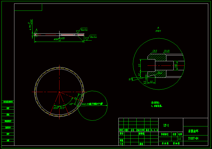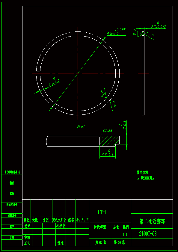 2100T柴油机活塞部件及工艺设计 2100T柴油机活塞加工工艺合理性是很重要的,通过对零件的作用及工艺方案分析,拟定毛坯的制造形式及工艺路线,通过分析、比较,采用了相对集中加工工艺方案,最终确定比较合理的机械加工工艺路线。制定工艺路线时主要考虑粗、精加工安排、加工方法选择、工序集中与分散、加工顺序等方面的要求。接着确定加工余量、工序尺寸,经过对工序特点的分析,恰当选择相应加工设备和工艺装备。接下来经过计算查表确定活塞各主要工序的切削用量并绘制工序卡片。