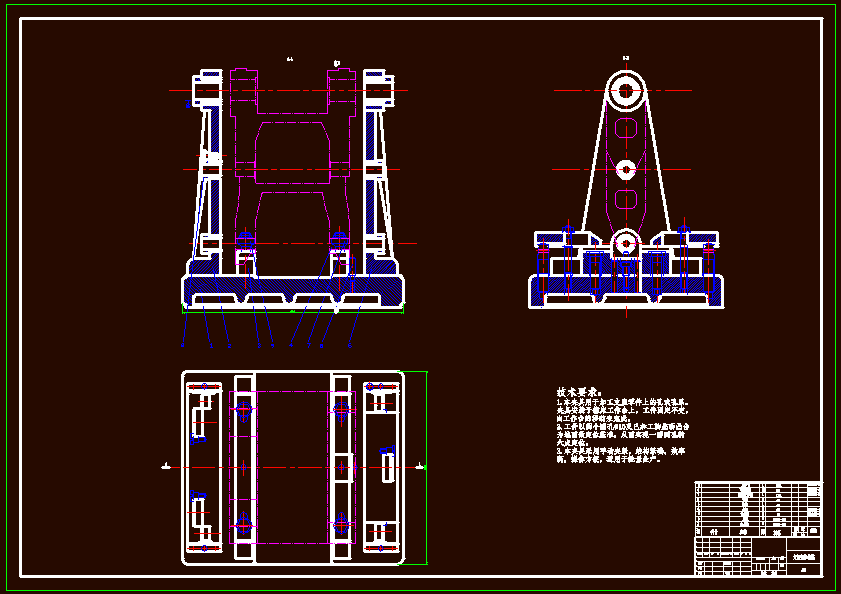 支架壳体镗模设计本次设计的支架壳体镗模是夹具的设计。镗模除具有定位,夹紧装置和夹具体等基本部分外,还和钻模一样,需有引导元件(镗套)来引导装镗刀的镗杆。镗套应按被加工孔的坐标位置而布置在一个或几个镗模支架上。因此,镗套,镗杆及镗模支架是镗模的特有原件,并由此而决定着镗模的结构特点和设计要点。