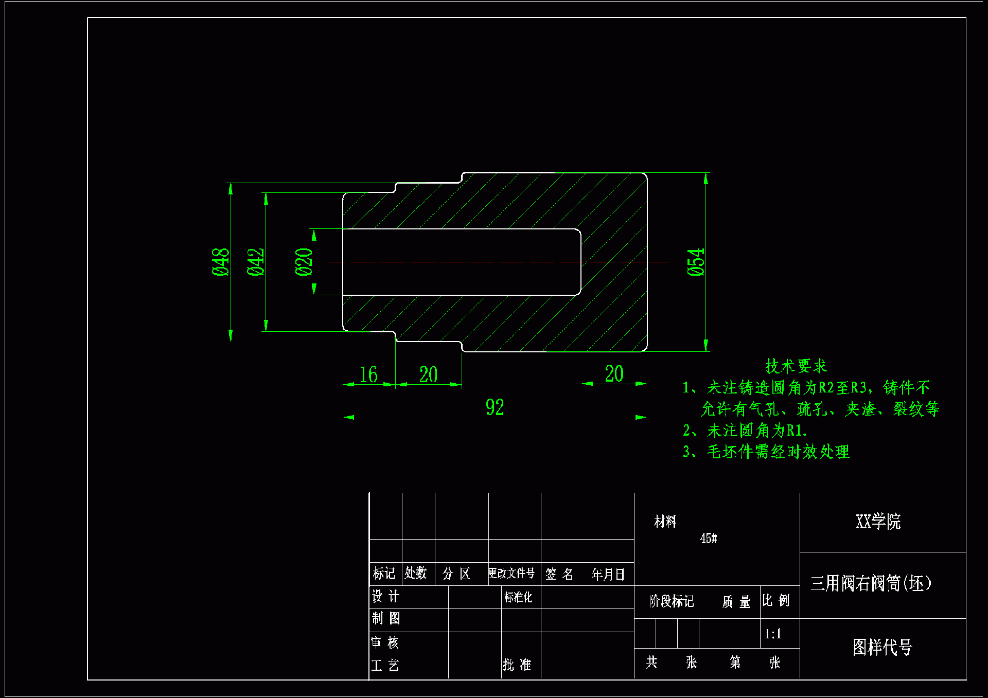 三用阀右阀简工艺规程及夹具设计 三用阀右阀简工艺规程及夹具设计是包括零件加工的工艺设计、工序设计以及切削用量设计三部分。在工艺设计中要首先对零件进行分析,了解零件的工艺再设计出毛坯的结构,并选择好零件的加工基准,设计出零件的工艺路线;接着对零件各个工步的工序进行尺寸计算,关键是决定出各个工序的工艺装备及切削用量。 机床夹具的种类很多,其中,使用范围最广的通用夹具,规格尺寸多已标准化,并且有专业的工厂进行生产。而广泛用于批量生产,专为某工件加工工序服务的专用夹具,则需要各制造厂根据工件加工工艺自行设计制造。本说明书夹具设计的主要内容是设计一副夹具。