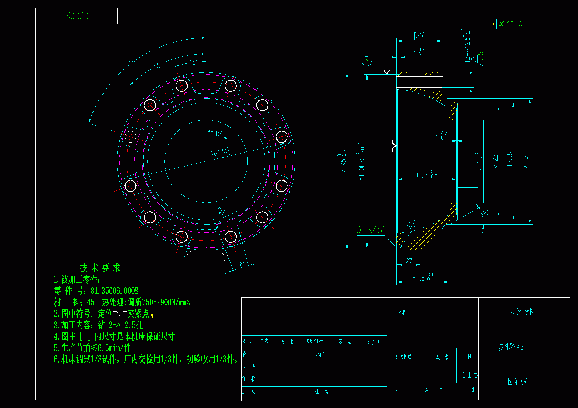 多孔零件组合钻模设计 本文主要内容包括设计的必要性分析;通过对设计的多孔组合钻模的功能分解与功能合成,以及对方案的设计从而提出新的加工方案。通过对定位方式的选择和对工件工艺性的分析,以及对零件工序图、加工示意图、的分析,提出对多孔组合钻模的总体设计方案。 本文对差速器壳孔的加工工艺进行了详细的分析,就其孔的加工提出了“一次装夹,多工位加工,达到产品图样的精度要求”的思路。根据这一思路设计了多孔组合钻模设计。 该多孔组合钻模由立柱、立柱底座、中间底座、滑台等组成。本文对各部分的设计进行了详细的计算和论证。